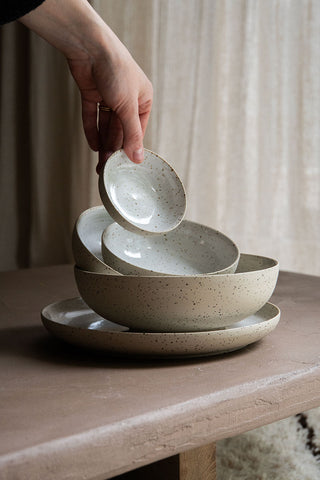 DerSerifenkollektionbietet eine Reihe eleganter, minimalistischer Keramik für den alltäglichen Gebrauch. Jedes Stück ist sorgfältig handgefertigt und verbindet Einfachheit mit Funktionalität. Alle Artikel dieser Kollektion sind für den täglichen Gebrauch konzipiert und spülmaschinen-, ofen- und mikrowellengeeignet. So sind sie sowohl schön als auch praktisch in Ihrer Küche.